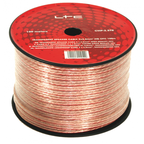 På lager (1 Stk) - Leveringstid: 2–3 hverdager2.078 krStk. pris /Ikke tilgjengeligTRANSPARENT HØYTTALERKABEL 2 X 2,5MM²
