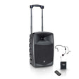 LD Systems Road Buddy er lett å transportere takket være innebygde styrehjul og et uttrekkbart håndtak. På toppen av det er det et praktisk oppbevaringsrom for opptil to håndholdte sendermikrofoner. Plasthuset til denne lette enheten er designet for å romme et 35 mm stativfeste.
