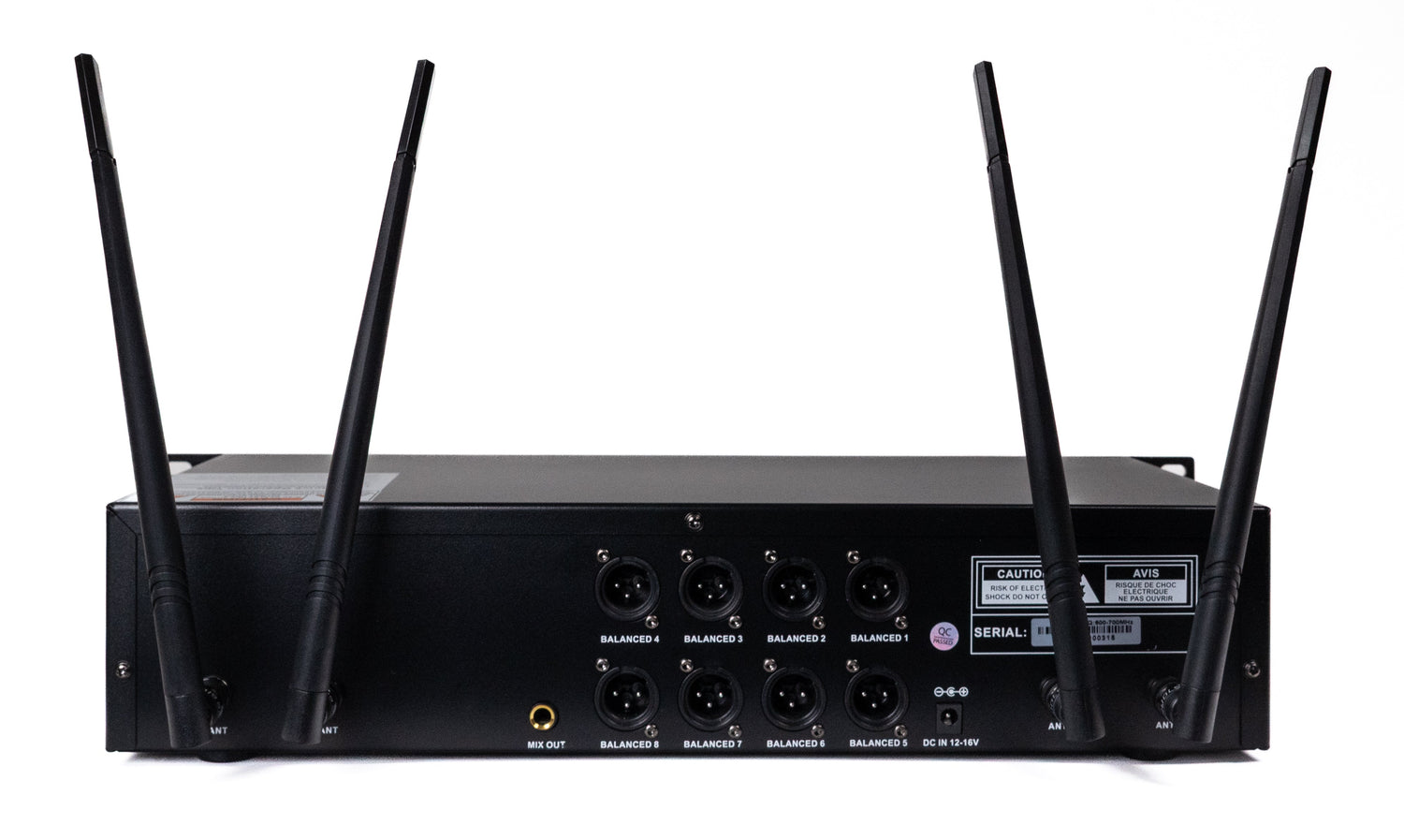 - Håndholdt trådløst mikrofonsystem med 8 mikrofoner