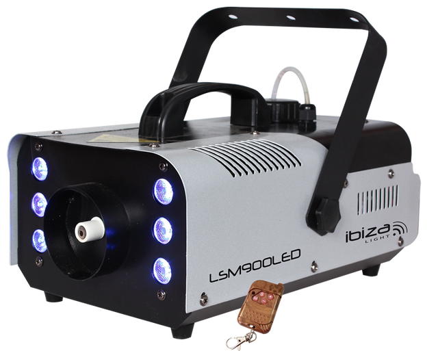 - Røykmaskin av ny generasjon, som har innebygget 6 x LED dioder på fronten som gir en fantastisk effekten av røyk og brann.