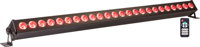 Kul LED-skjerm 24x 4W RGBW 6/9/16/58 DMX-kanaler 4-knappers kontrollpanel 4-i-1 lysdioder Programmerer: Auto, musikkstyrt, DMX, Master/slave & fjernkontroll Gulvstativ og fjernkontroll.