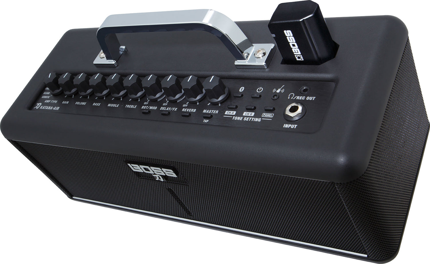 - Forsterkeren kan kjøres på både batteri og strømforsyning (8 AA-batterier).