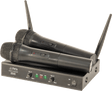 - 2-kanals UHF-system bestående av 2 håndholdte mikrofonsendere og 1 mottaker.