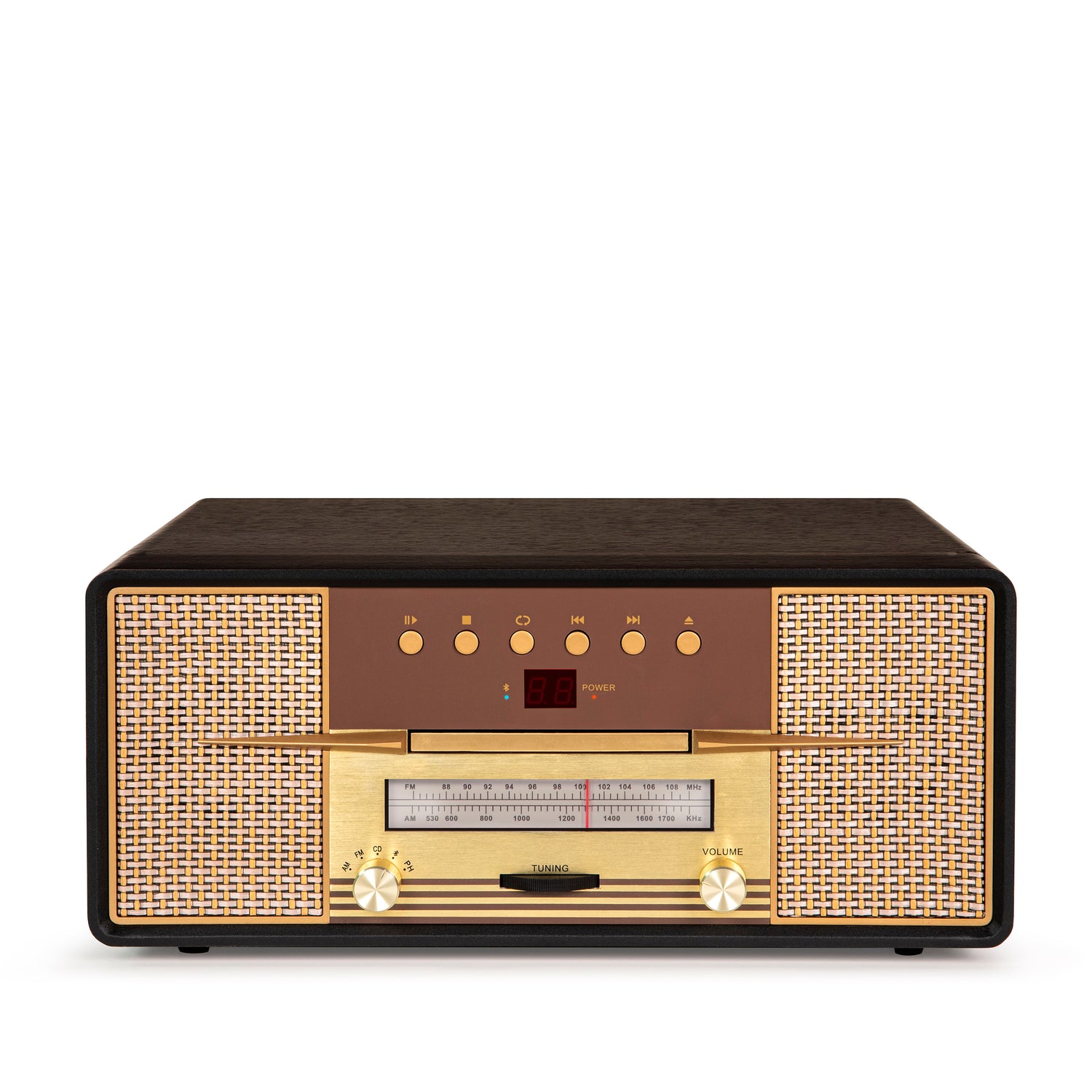 - Spille analog og gjenoppliv CD-samlingen din med den innebygde CD-spilleren eller spill av via AUX.