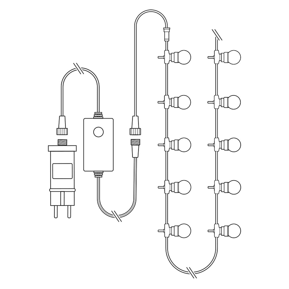 • Lenke på 10 meter med 20 LED-lys med en diameter på 50 mm og en svart kabel