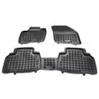 Den opphøyde kanten gjør at matten holder på smuss og skitt og beskytter bilens originale teppe, i tillegg til at den er enkel å rengjøre. Dersom bilen har originale låser vil det være festehull i matten som sørger for at mattene holdes på plass i bilen.
