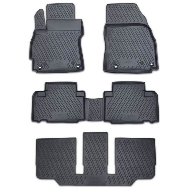Den opphøyde kanten gjør at matten holder på smuss og skitt og beskytter bilens originale teppe, i tillegg til at den er enkel å rengjøre. Dersom bilen har originale låser vil det være festehull i matten som sørger for at mattene holdes på plass i bilen.