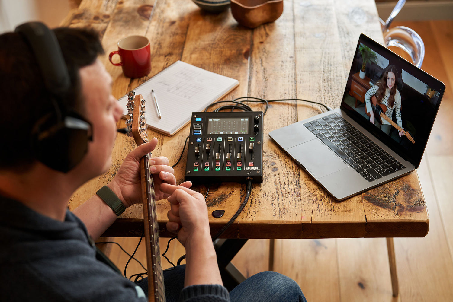 - Kompakt 5-kanals streaming-mikser med høyimpedans gitar/bassinngang.