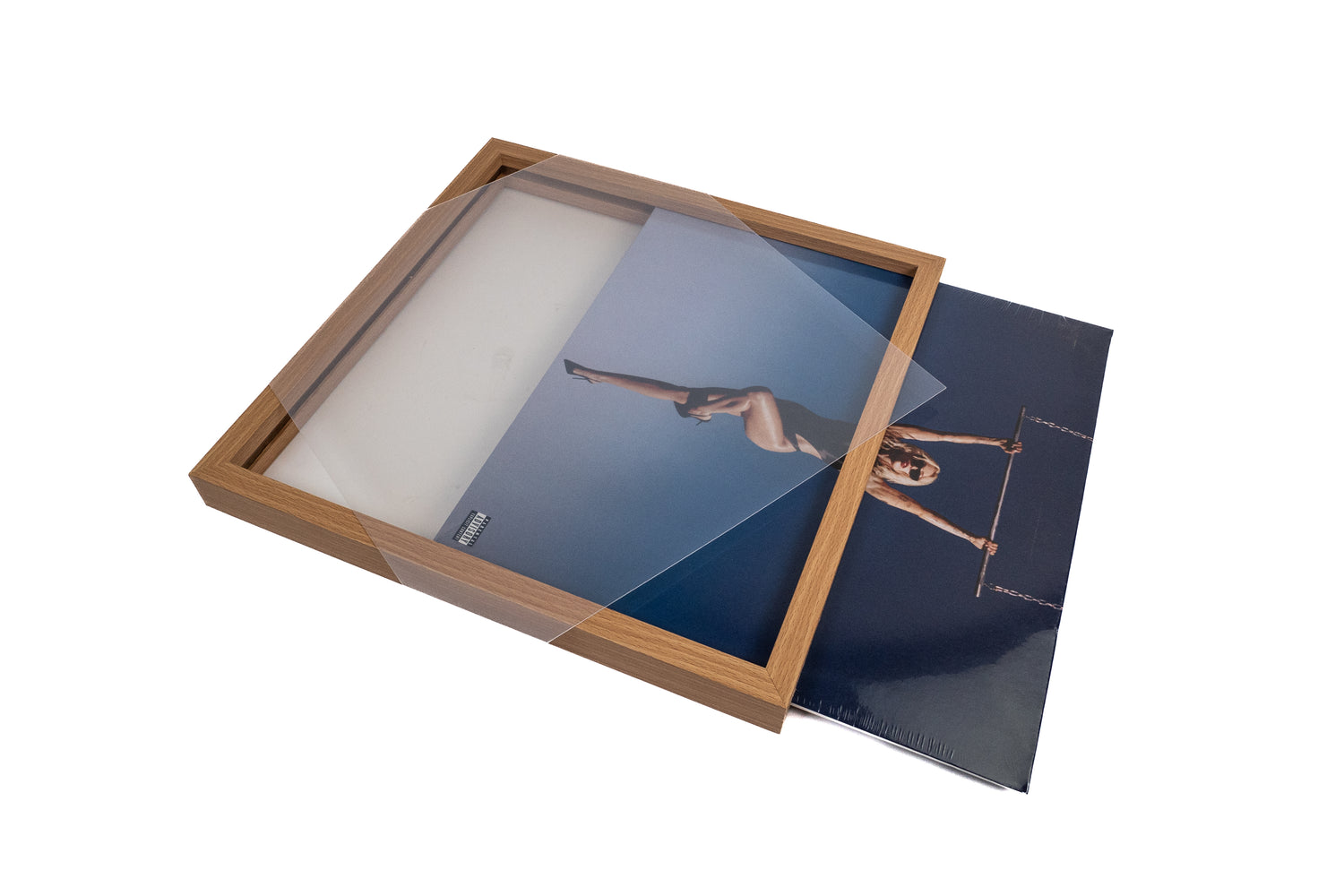 - Elegant ramme laget for 12" vinyler med et stilig nøytralt treutseende.