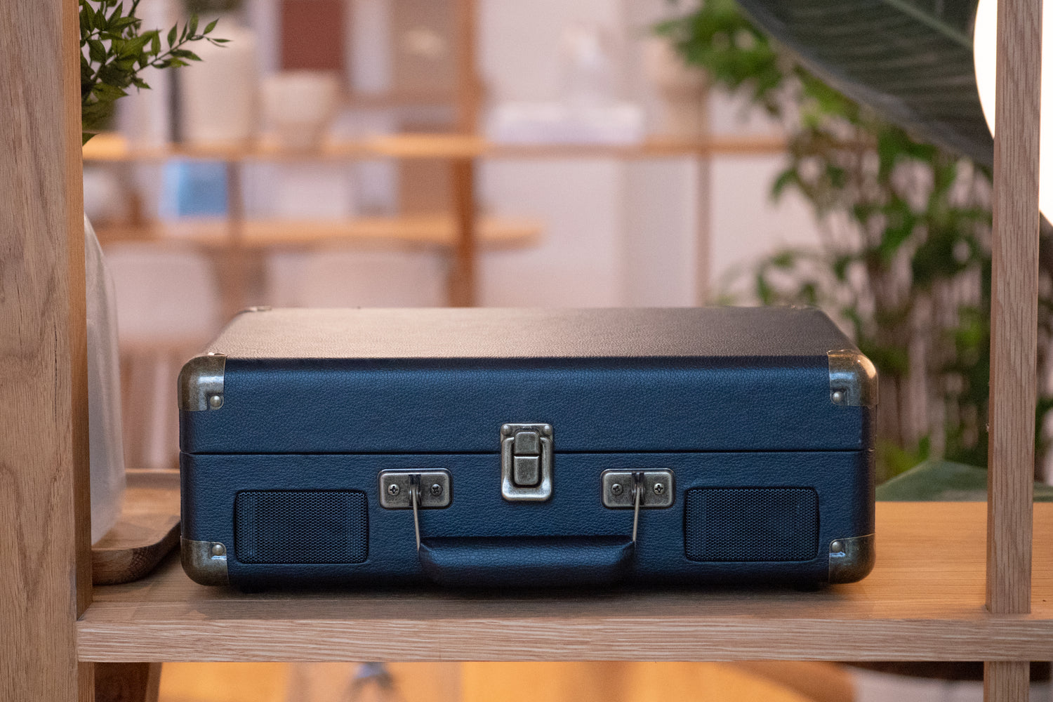 - Takket være det praktiske håndtaket blir det enkelt å pakke platespilleren og ta den med seg overalt.