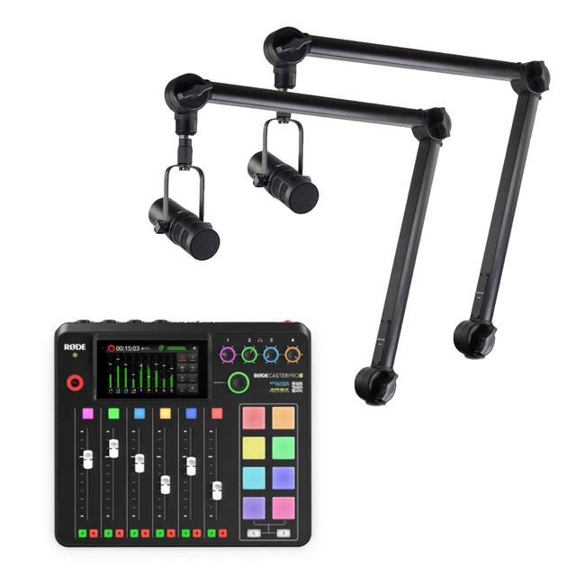 En startpakke for 2 personer, hvor du får kvalitetsprodukter hele veien. 2 stk. podcast mikrofoner og 2 stk. mikrofonarmer fra StudioMate .