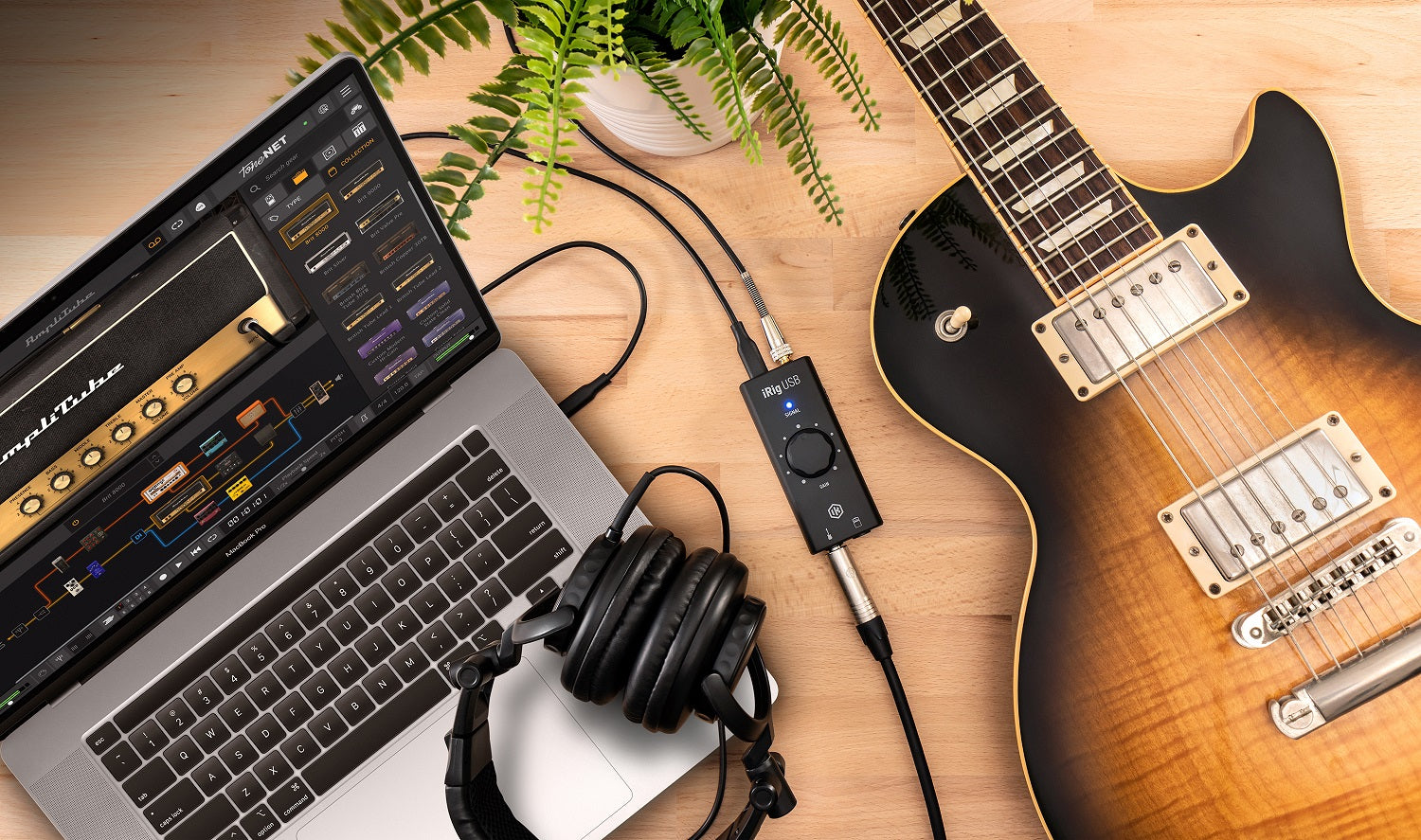 - Utstyrt med en elegant design med USB-C-tilkobling og den nyeste forsterker- og effektmodelleringsteknologien fra IK.