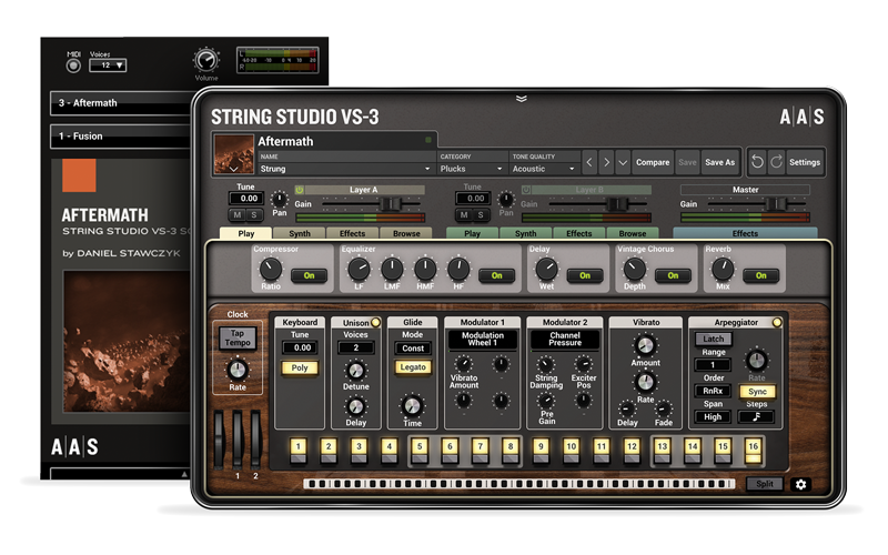 Lyddesigner Daniel Stawczyk er tilbake med Aftermath, en 150-preset samling for AAS' strenge-modellerende synthesizer.
