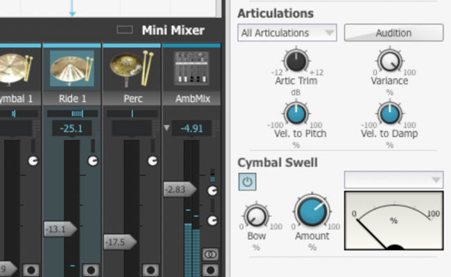 Den interne BFD3 miksingsmotoren har DCAM-modellert komprimering, filtrering og andre effekter sammen med flott lydende EQ og algoritmiske romklanger. Du kan til og med bruke et eksternt signal som en kompresjons sidechain-kilde.