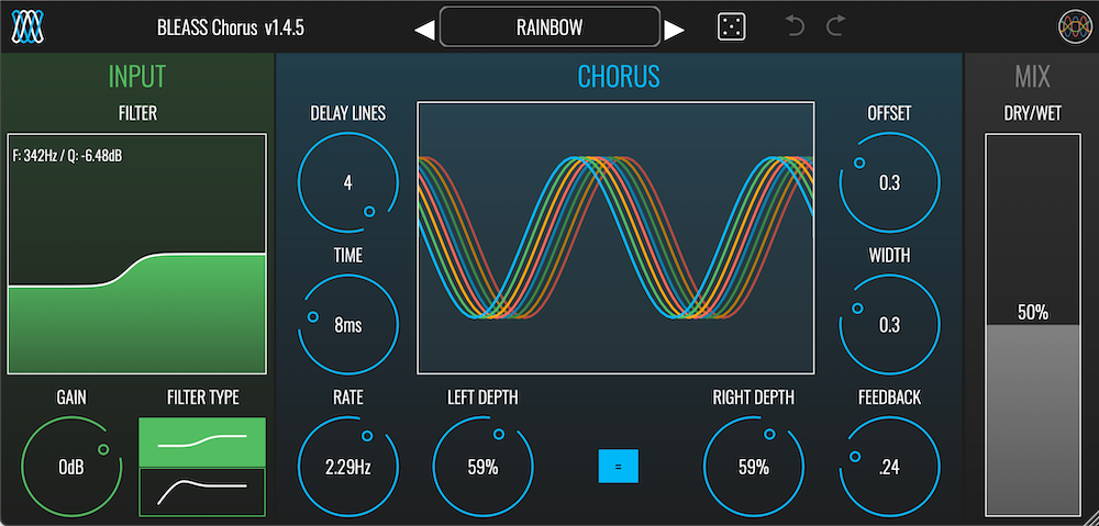- INPUT FILTER: Pre-chorus signal shaping for tonal control.