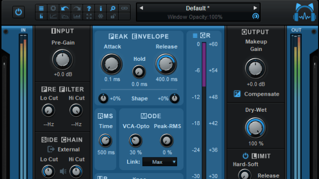 Plug-in inkluderer flere filtre for å kontrollere frekvensene som påvirkes av kompresjonen. Dens kontinuerlige VCA/Opto og Peak/RMS-kontroll lar deg jevnt og presist velge oppførselen til envelope-detektionen som du aldri har vært i stand til før.