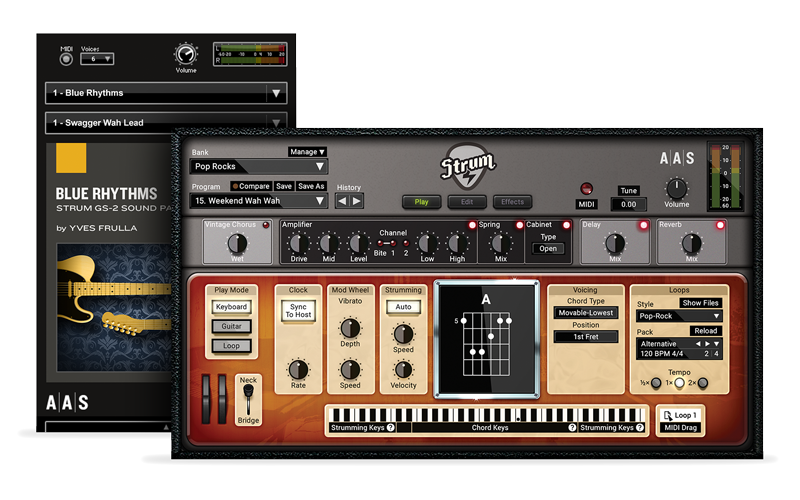 Erfaren kanadisk musiker Yves Frulla er tilbake med Blue Rhythms, som hyller de sjelfulle lydene fra 70-tallet og fanger rytmene definert av legendariske artister fra den musikalske epoken med 12 spillestiler, 87 gitarpresets og 84 strumming-mønstre som kan spilles med dine egne akkordprogresjoner.