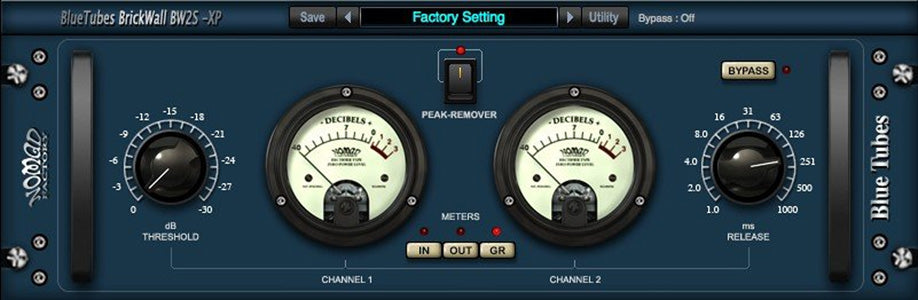 BT BrickWall BW2S-XP er en enkel og elegant murvegg kompressor/limiter. Bare sett inn BT BrickWall BW2S-EX på din mono- eller stereobane, og du får en jevn lydbane uten uønskede transients.