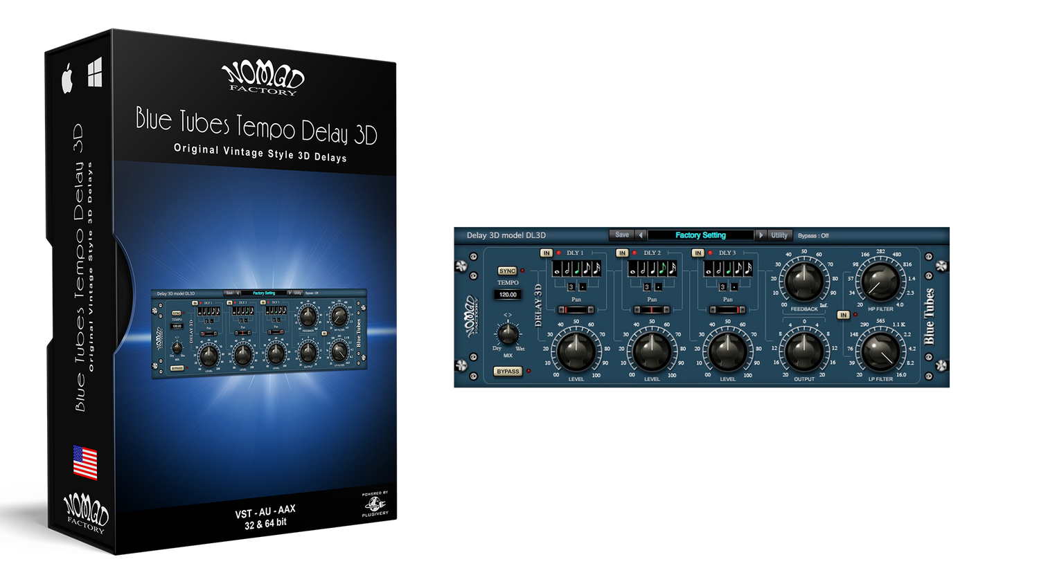 Denne delayen tilbyr tre separate kanaler. Ved å bruke Pan-kontrollene kan du panorere alle tre delay-kanalene til midten, eller spre kanalene ut over stereo-feltet (venstre, midten, høyre). Gain-kontrollene setter nivåene for hver kanal individuelt.