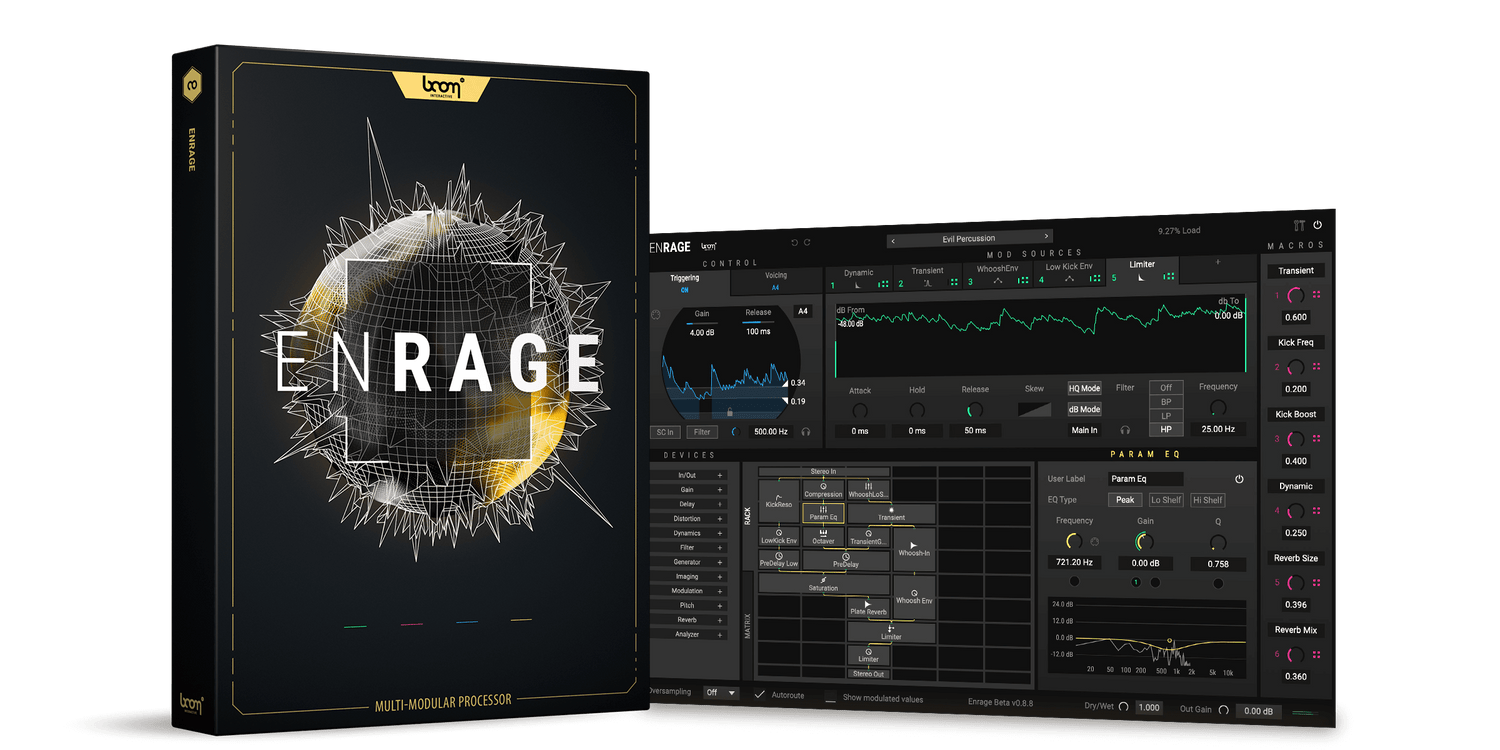 ENRAGE er et svært vanedannende multi-modulært FX-behandlingsverktøy som åpner opp for ubegrensede muligheter i hvordan du justerer og behandler lydene dine. Det vil enkelt håndtere dine daglige FX-plugin-behov, men vil også introdusere deg for en verden av vanvittig kul lydbehandling. ENRAGE er super responsiv og ekstremt presis. For å si det enkelt: ENRAGE vil endre måten du opplever lyder på.