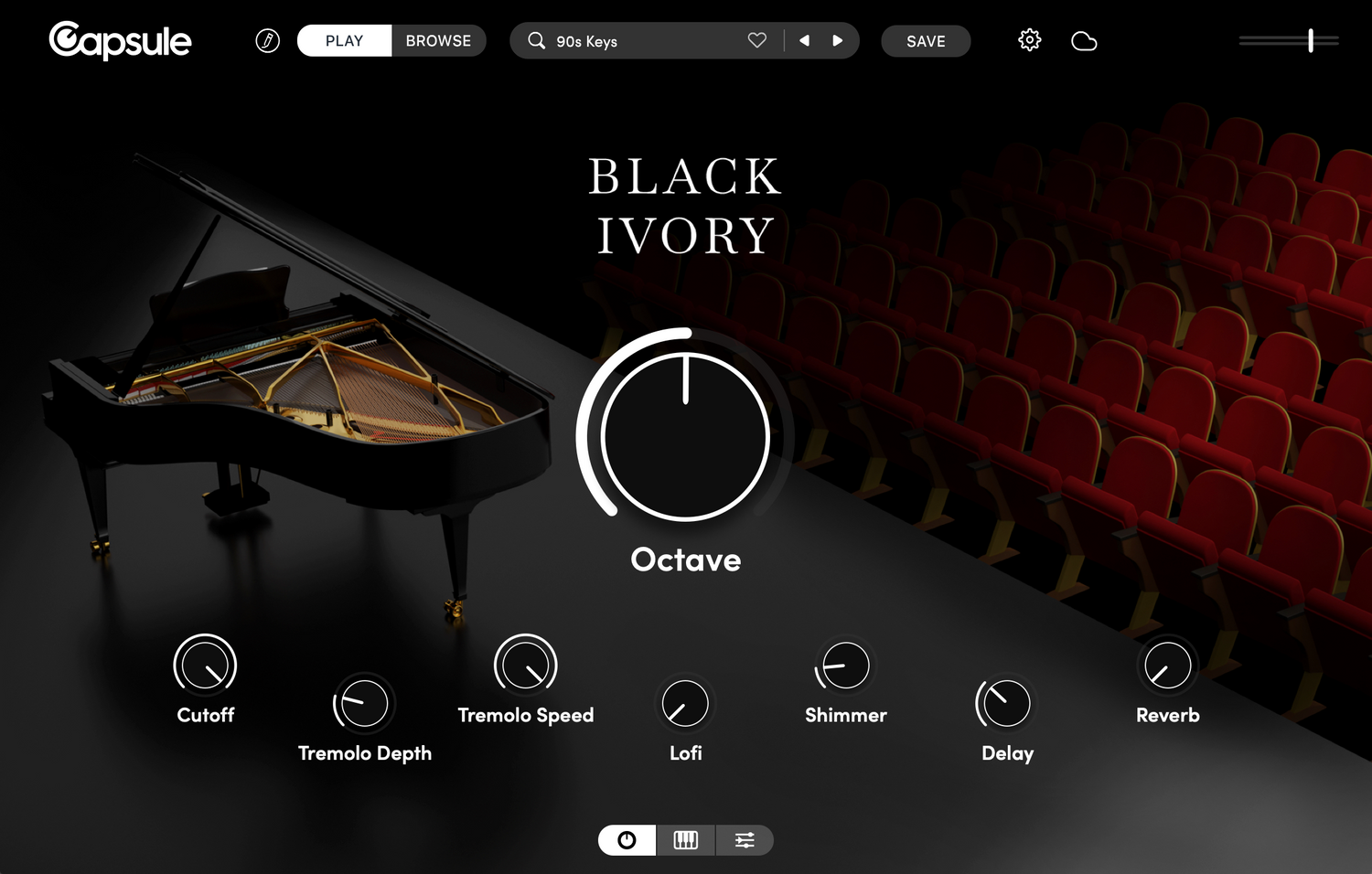 Samplet fra en Steinway Model D, Black Ivory er en konsertflygel med en forskjell. Ikke bare kan den formidle de klassiske, elegante og rike tonene fra et tradisjonelt flygel; Black Ivory gir deg 17 unike presets som endrer lyden med filmatiske variasjoner, frodige strengekombinasjoner og forvrengte artikulasjoner. Dette instrumentet inkluderer også to forskjellige mikrofoninnstillinger for å legge til rom eller intimitet til miksen din.