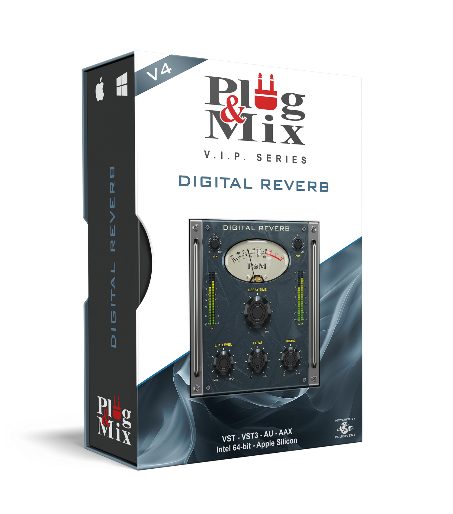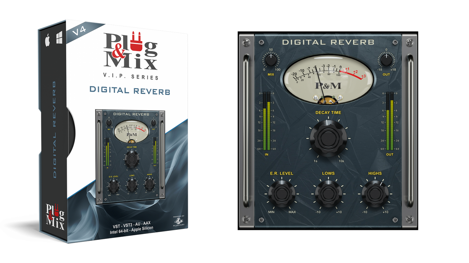 "ER Level" knottene lar deg kontrollere nivåene av de tidlige refleksjonene, mens "Lows and Highs" justerer tonen i reverb'en. Den store "Decay Time" knotten kontrollerer lengden på reverb'en, mens "mix and output" knottene befinner seg i øvre venstre og høyre hjørne.
