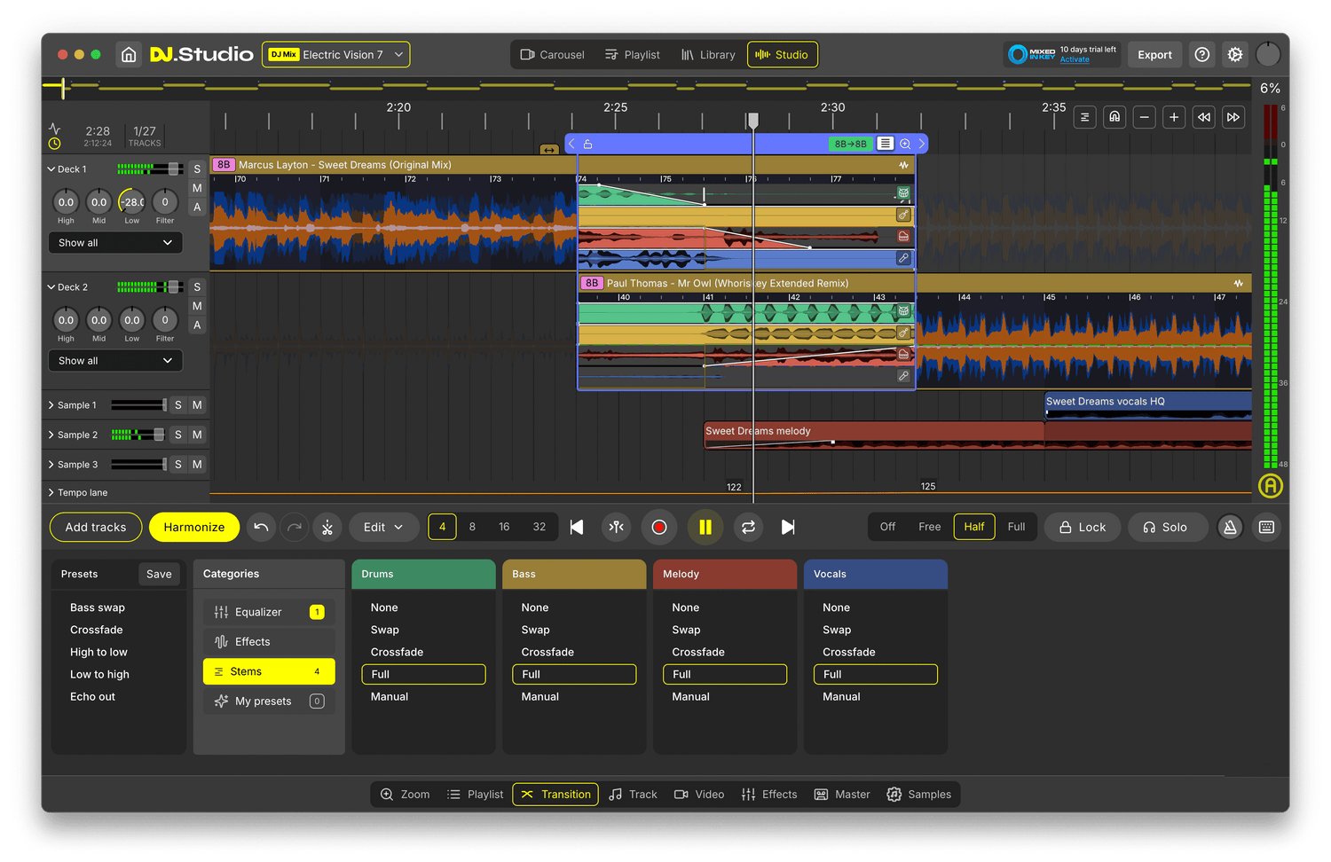 - Skjær og isoler trommer, bass, melodi og vokaler for mashups eller utvidede redigeringer.