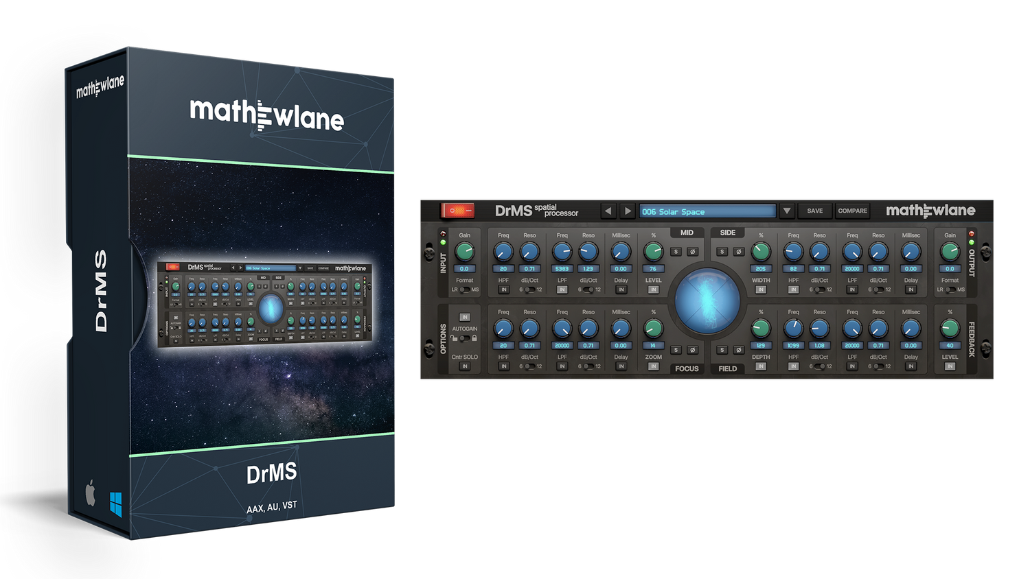 DrMS er en unik spatial prosessor, tilgjengelig som AAX/AU/VST/VST3 plug-in, med et bredt spekter av bruksområder for miksing, mastering og postproduksjon - som går fra enkel MS (Mid-Side) koding/dekoding, til forbedring av stereo feltbredde og dybde, til å fikse mono kompatibilitetsproblemer og mer.
