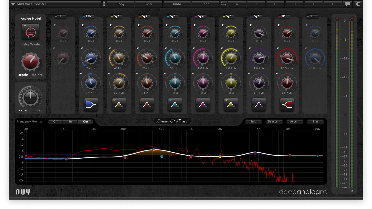 Duy Deep Analog EQ er den første multiband parametriske equalizeren som kombinerer linear fasefiltrering med analog-modellert teknologi.