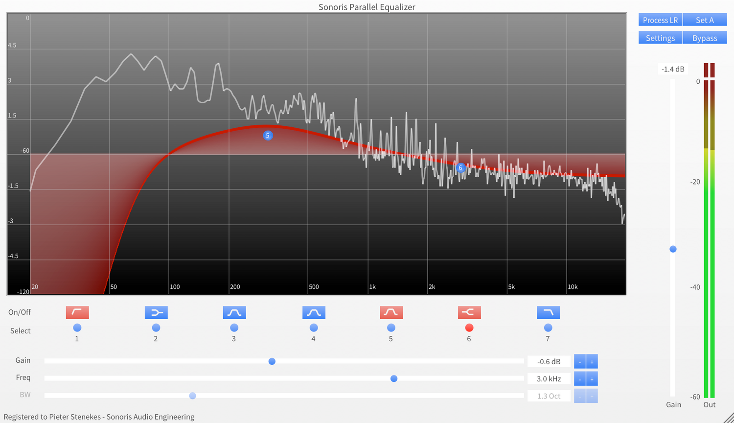 Sonoris Parallel Equalizer (SPEQ) er en minimum fase parametrisk equalizer i VST, VST3, AU, AAX og RTAS-format for Windows og Mac. Pluginen er egnet for mixing og spesielt mastering. Den har faste filtertyper på hvert bånd, og bånd 2 til 6 er koblet parallelt. Filtrene er bygget i en feedback/feedforward-måte for å gi kutting og boosting, som i analoge grafiske equalizere. Bånd 3 til 5 er konstant-Q klokker, og 2 og 6 er hyller. Bånd 1 og 7 er lav/høy kutting og koblet i serie med resten.