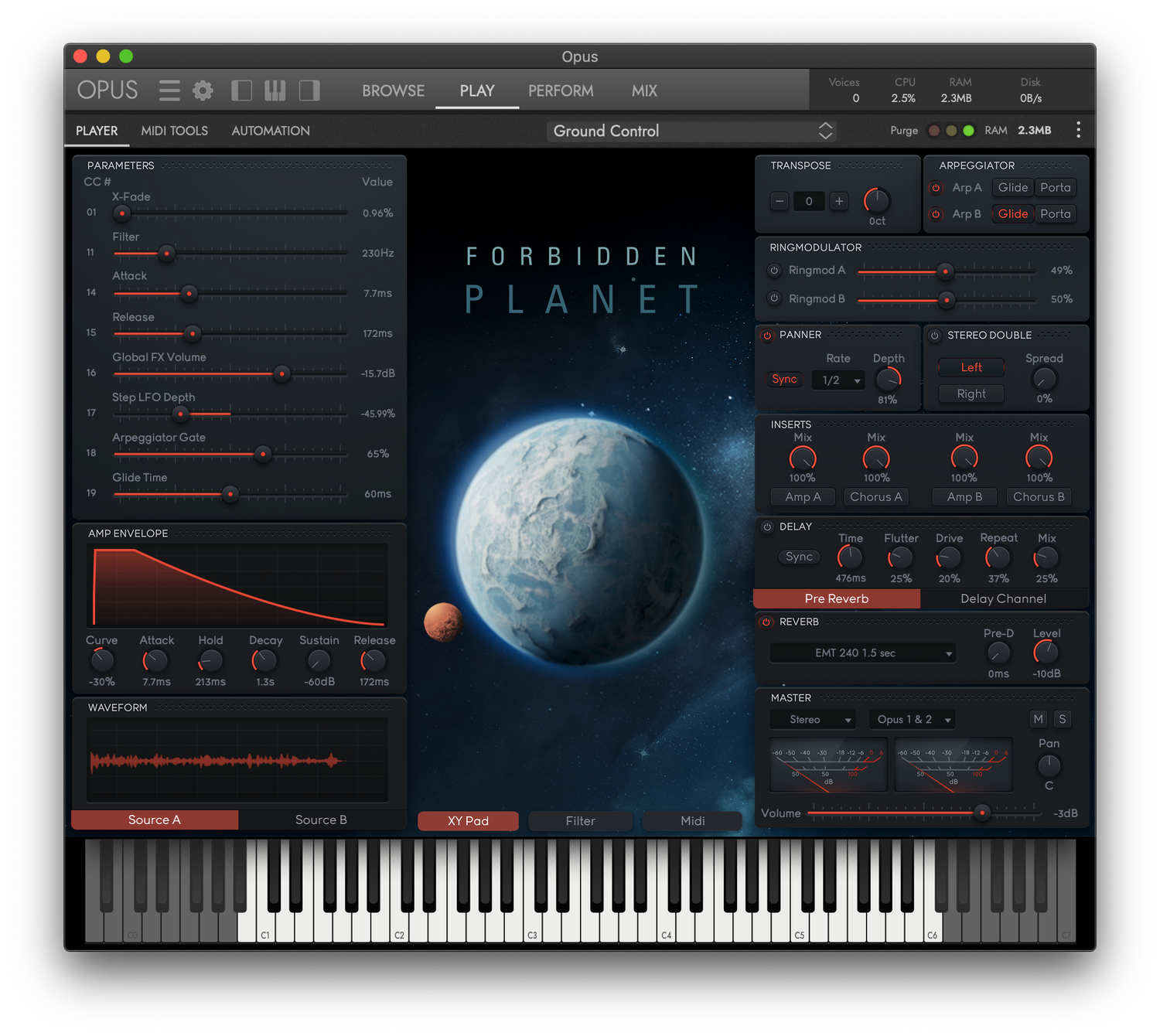 FORBIDDEN PLANET har over 600 ekspertmessig utformede morphing synths innen kategorier som Arpeggiator, Bass, Drones, FX, Leads, Pads, og Poly Synth. Morph fritt mellom elektroniske lag, akustiske instrumenter og futuristiske lyder - perfekt for lydspor, EDM, hip hop og mer. Med en helt ny suite av post-prosessering og miksverktøy, vanvittig filtermodulering, og et omfattende rack av effekter, har du nå muligheten til å bryte bort fra alt som har vært før med nye kontroller, drevet av den kritikerroste OPUS-motoren, som tilbyr enestående lydformingskraft med forhåndsinnstillinger som er helt tilpassbare av brukeren.