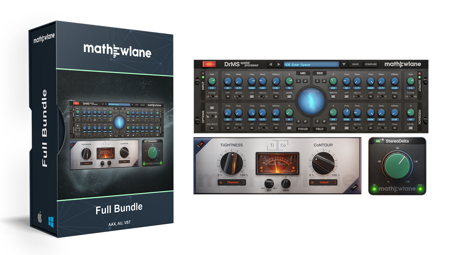 Mathew Lane Full Bundle kombinerer den anerkjente DrMS spatial processor sammen med den analoge TiCo kompressor & karakter plugin, samt den brukervennlige StereoDelta en-knapps spatial processor – alt i ett kjøp!