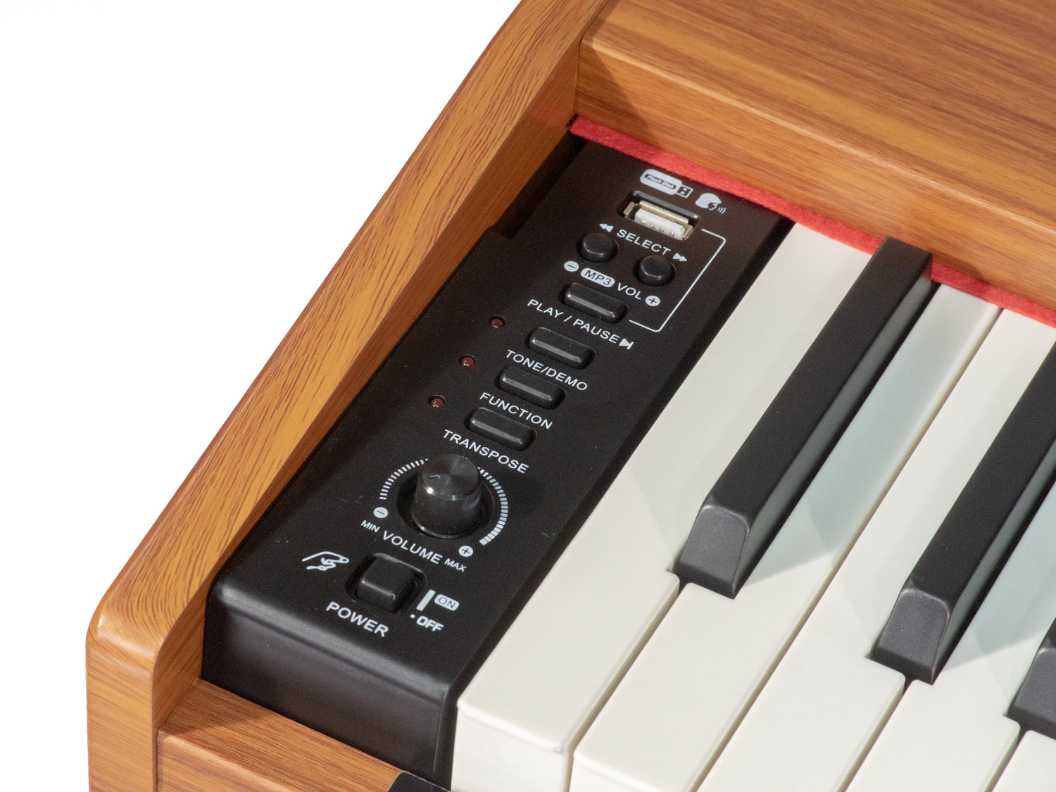 Grooveland DDP-140 inneholder 40 innebygde demo-sanger og gir mulighet for MP3-avspilling, slik at du kan spille med til dine favorittlåter. Med dual headphone-utganger kan to personer øve samtidig – perfekt for undervisning eller stille trening.