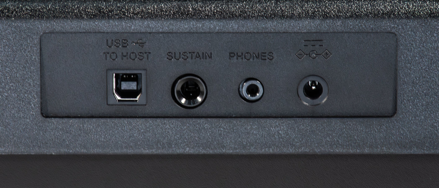 - Tilkoblinger: USB-B til host, Sustain, Hodetelefonutgang, Strøminngang