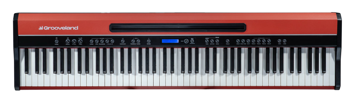 Grooveland FP80 El Piano er et elegant og allsidig digitalpiano som kombinerer profesjonell lyd med brukervennlig funksjonalitet. Med 88 progressive hammer action-taster gir det en autentisk spilleopplevelse som matcher følelsen av et akustisk piano.