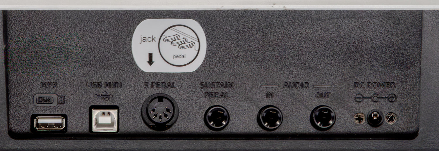 - Inkludert: keyboardstativ og pedal-enhet med tre pedaler