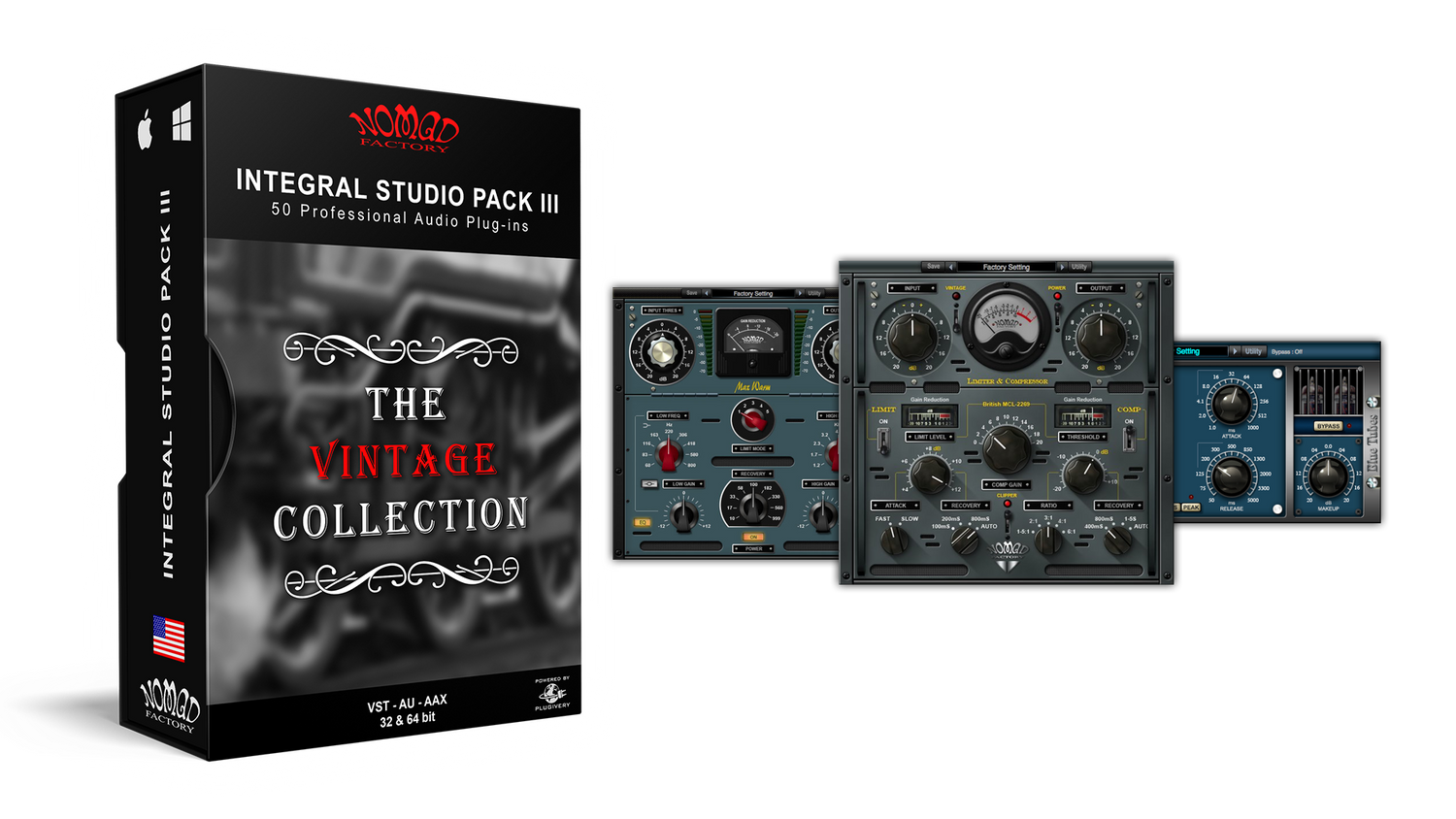 Med over 50 vintage-lignende plug-ins modellert etter unike hardware-enheter inkluderer den mange av Nomad Factorys mest kjente plug-ins, som den legendariske Analog Signature Pack (med den ettertraktede Dual Limiting Amplifier LM-662 plug-in), BlueVerb DRV-2080 og Essential Studio Suite.