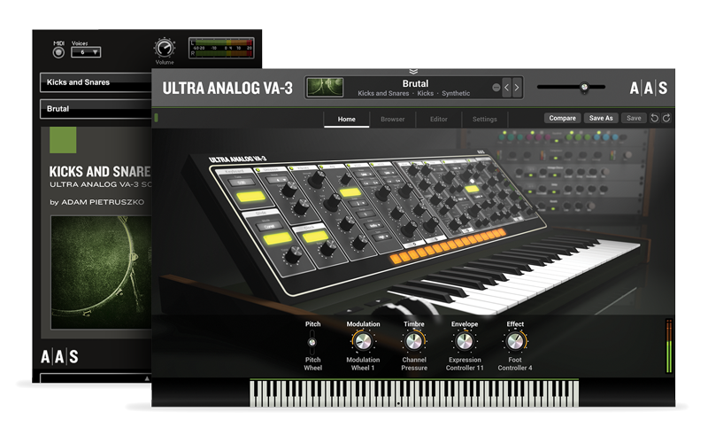 Original tekst: Du kan aldri ha for mange kicks og snares! Resident sound designer Adam Pietruszko signerer en ekspertlaget og smart samling av punchy bass tromme og cut-through snare presets i denne nye lydpakken for Ultra Analog VA-3.