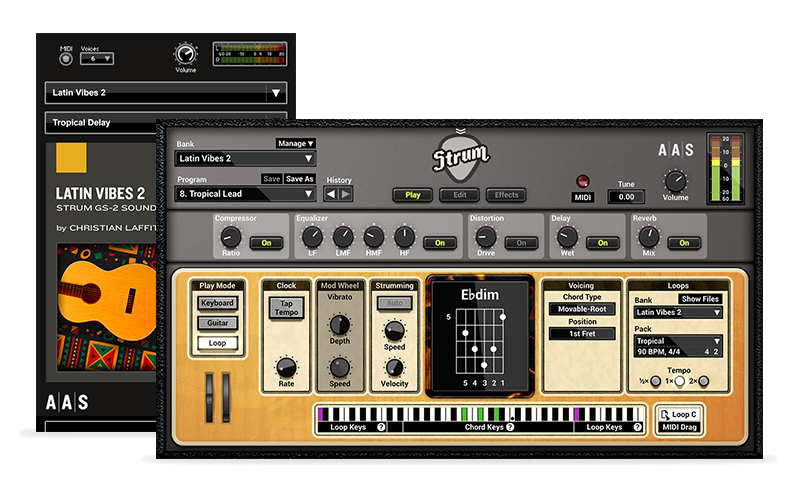 Med sine 12 stiler, 84 gitarpresets og 84 strumming-mønstre som kan spilles med dine egne akkordprogresjoner, er Latin Vibes 2 fylt med groovy elektriske og akustiske strumming-loops og lyder som garantert vil tilføre gode vibrasjoner til din neste verdensmusikkproduksjon.
