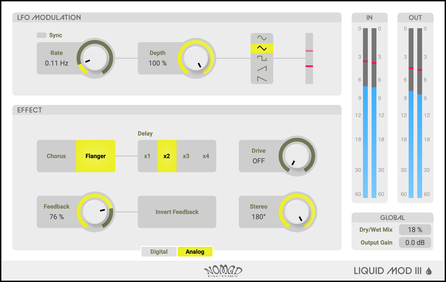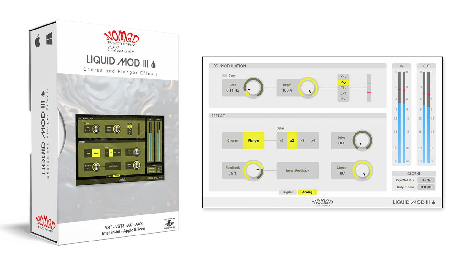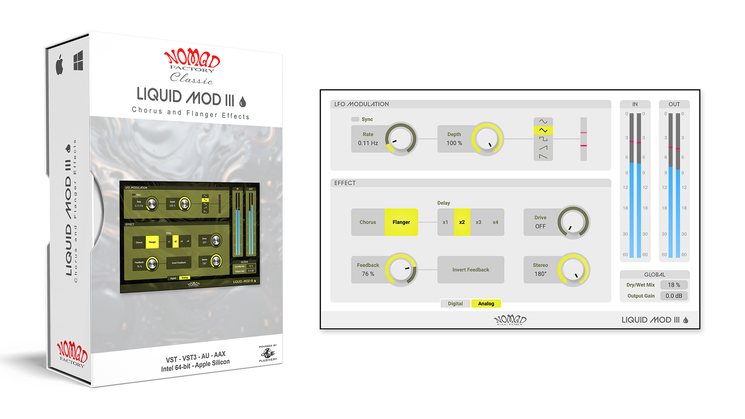 Liquid Mod III fanger de klassiske modulasjonslydene som har formet tiår med musikkproduksjon. Fra silkemyk chorus og romslig flanging til uttrykksfull vibrato, gir denne pluginen autentisk vintage karakter til miksene dine.