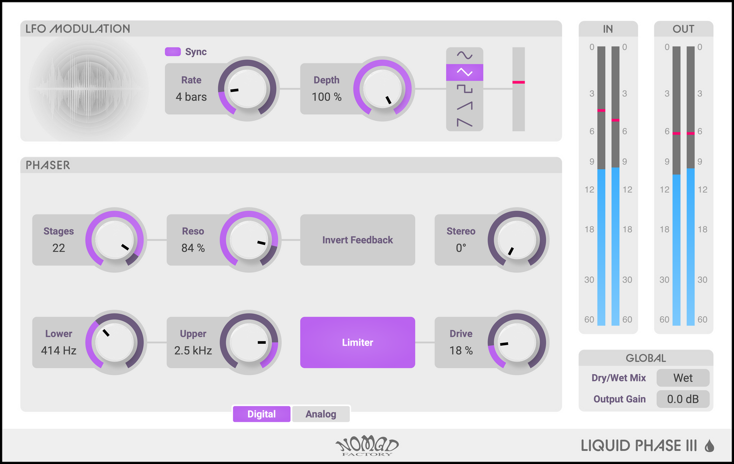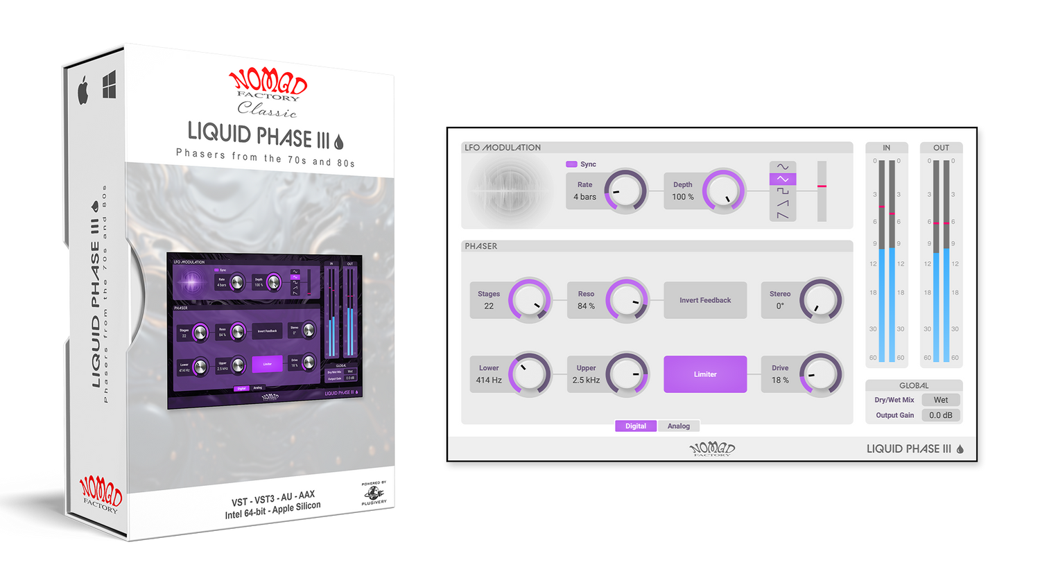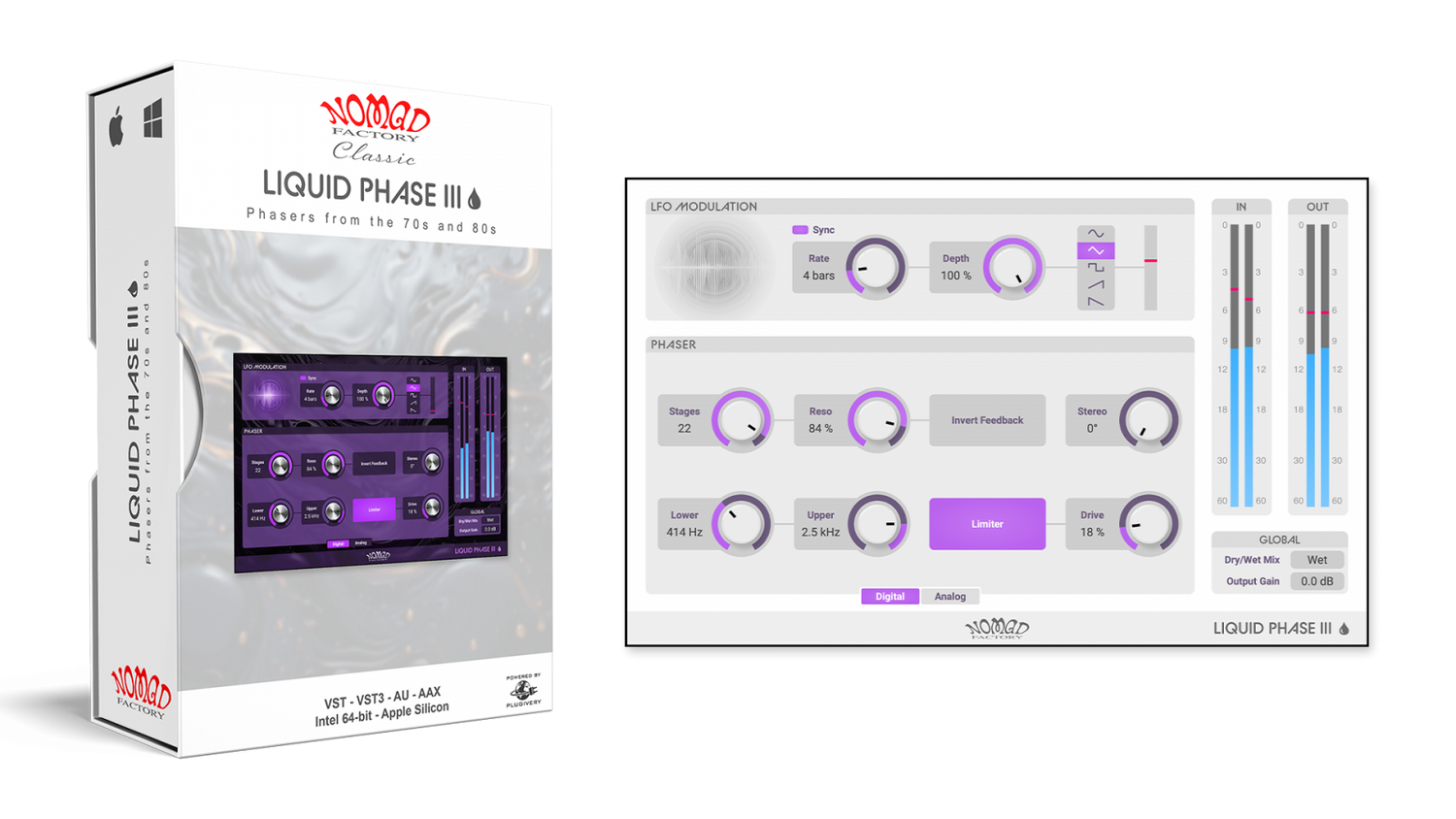 Liquid Phase IIIs intuitive design, komplett med stereo-spredning og et justerbart grensesnitt, gjør det enkelt å justere alt fra subtil bevegelse til dristige, resonante sveip. Moderne kompatibilitet med VST3 og Apple Silicon sikrer feilfri ytelse i ethvert produksjonsmiljø.