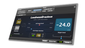 Loudness Gracious forener WaveRider’s legendariske nivåkontroll med Defaulter’s loudness-detektering for å levere jevn, nøyaktig loudness-kontroll i en offline arbeidsflyt. Enten du mikser for kringkasting, film, spill, podcast eller musikk, får Loudness Gracious deg til nøyaktige LKFS/LUFS-verdier mens den forsiktig former dynamikken med justerbare forhold. Resultatet? Ren, naturlig lyd — raskt.