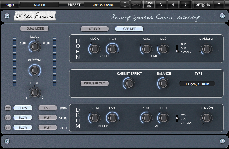 De interne kabinettrefleksjonene, som gir Leslie sin berømte milde lyd, emuleres også, men med den unike muligheten til å øke eller redusere refleksjonene. Så du kan gå fra standard lukket kabinett til roterende høyttalere uten noe kabinett i det hele tatt.