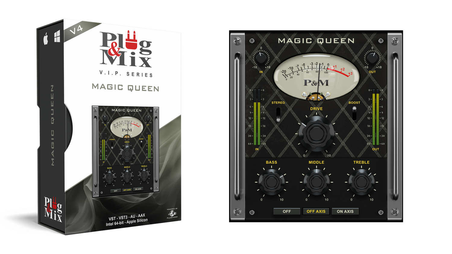 Kanaliser de legendariske tonene fra klassiske britiske forsterkere med Magic Queen, en plugin inspirert av de lyse, janglete lydene fra Vox AC30. Juster Drive, Bass, Middle og Treble for å forme din perfekte tone, og velg blant høyttaleremuleringsalternativer for ekstra autentisitet.