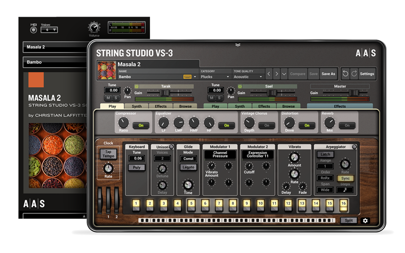 Følgende oppfølging av den smakfulle Masala, har den faste lyddesigneren Christian Laffitte laget en ny samling med 100 krydrede, unike og deilige lyder som utforsker de fulle mulighetene til String Studio VS-3.