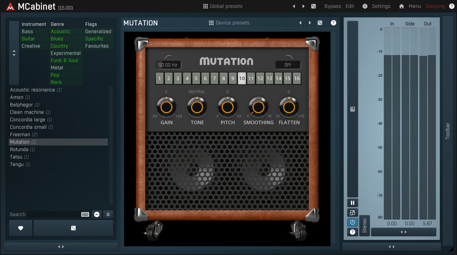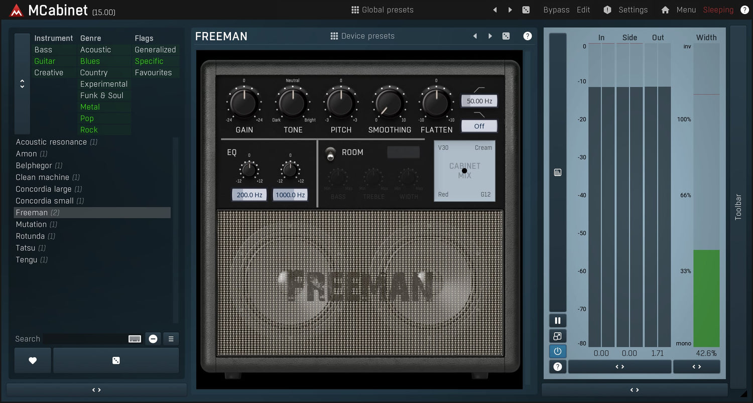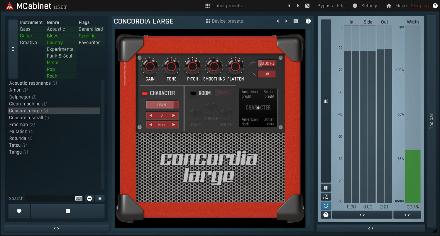 MCabinet er en revolusjonerende kabinettsimulator hovedsakelig for gitarer og bass, men kan også være et flott kreativt lyddesignverktøy. I stedet for tusenvis av IR-filer lar den deg fokusere på lyden selv og gir deg et praktisk talt uendelig antall kabinetter!