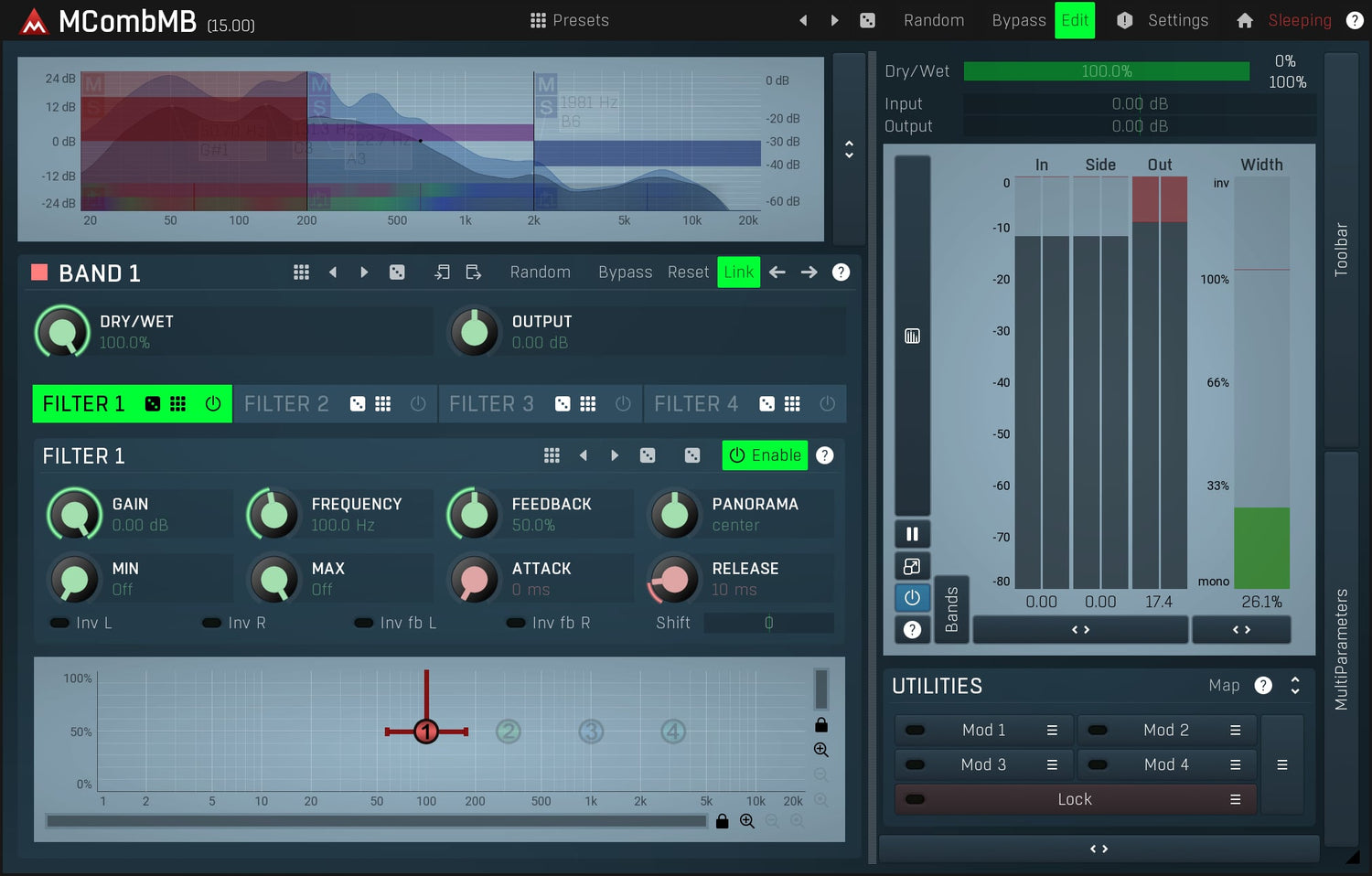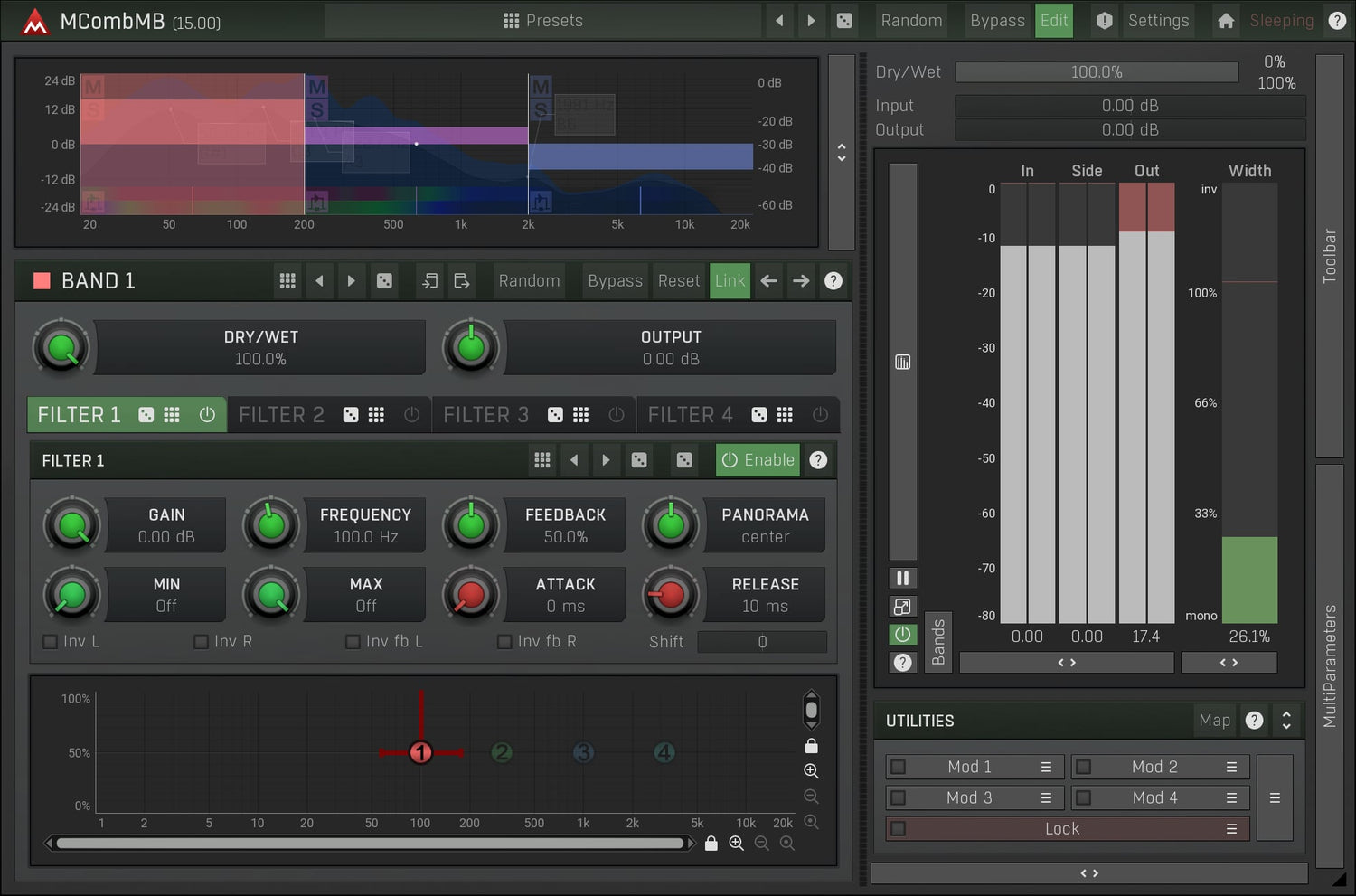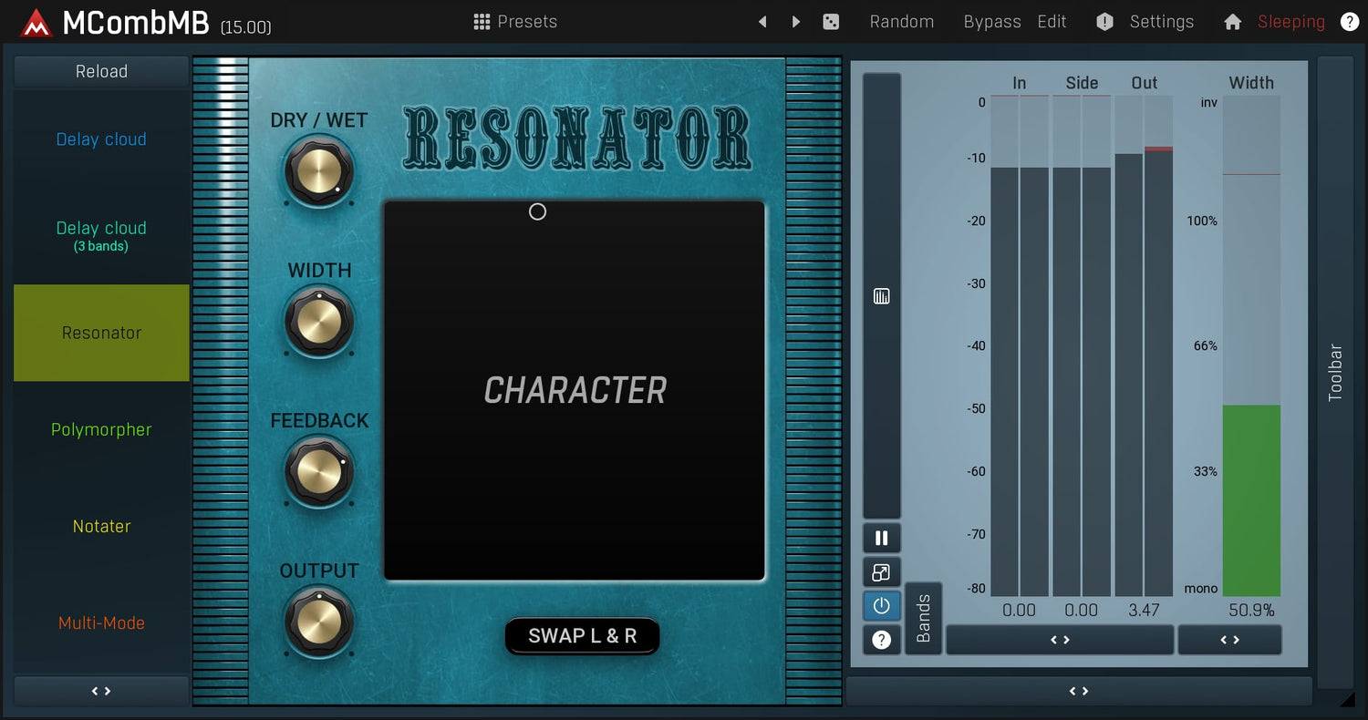 MCombMB er et ekstremt allsidig multi-comb filter, designet for de som søker en virkelig unik lyd. Takket være sin smarte randomiseringsmotor trenger du ikke engang å være en vitenskapsmann for å få utrolig bevegelige teksturer, rytmiske pads eller skrikende trommesløyfer.