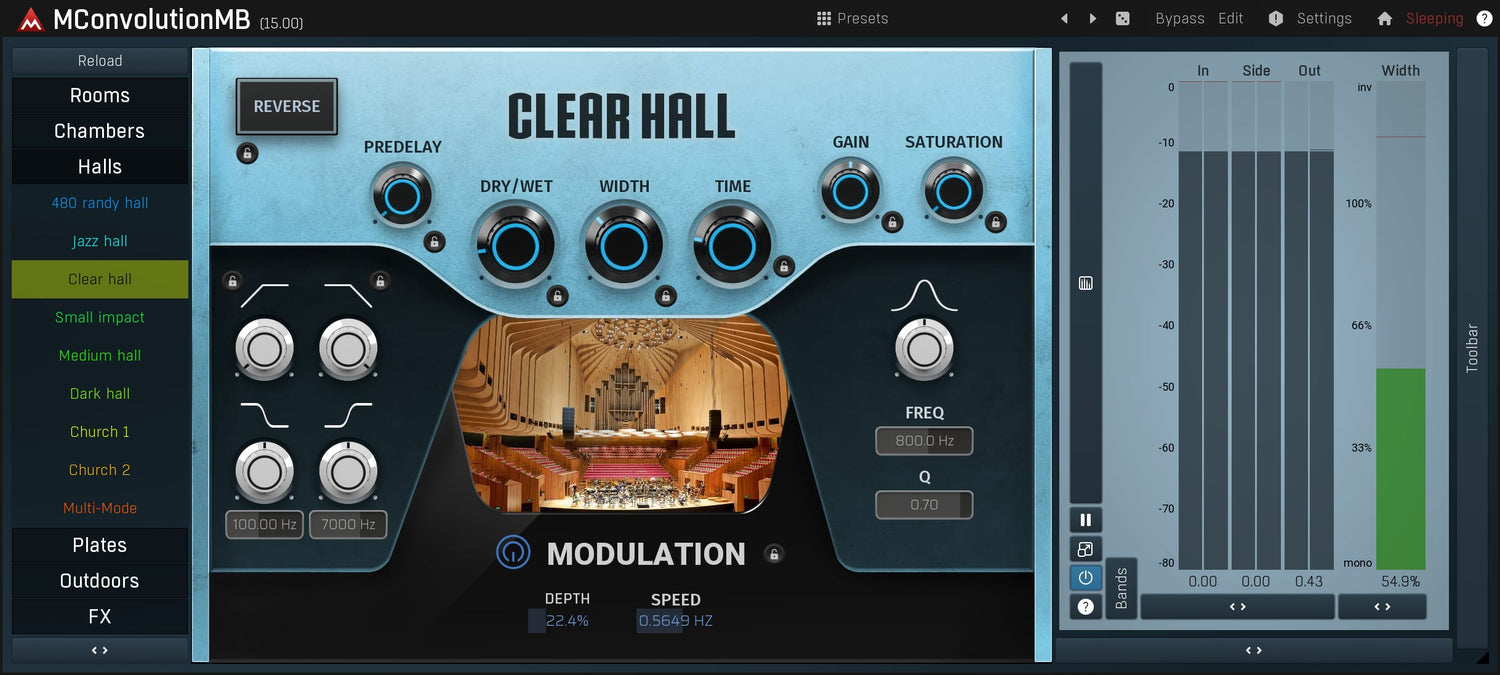 Konvolusjon er en essensiell lydbehandlingsteknologi, i stand til å gjenskape ekstremt realistiske romklanger, mikrofon- og boksimuleringer, og til og med andre plugins. MMultiBandConvolution kan gjøre alt med krystallklar lydkvalitet og fantastisk fleksibilitet.