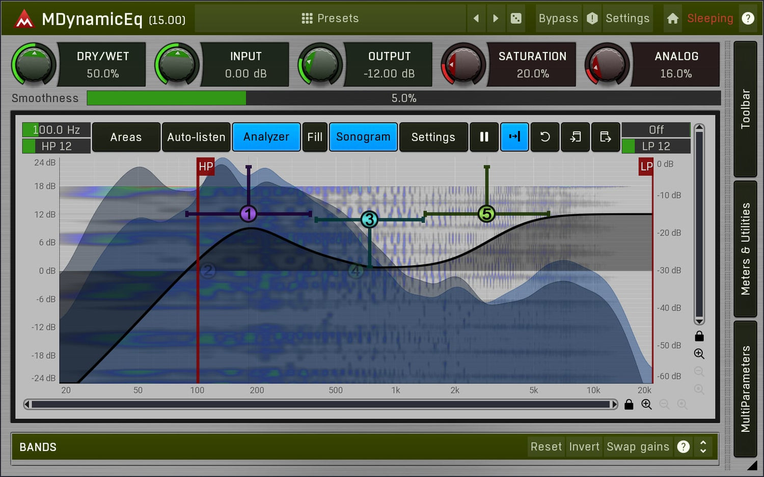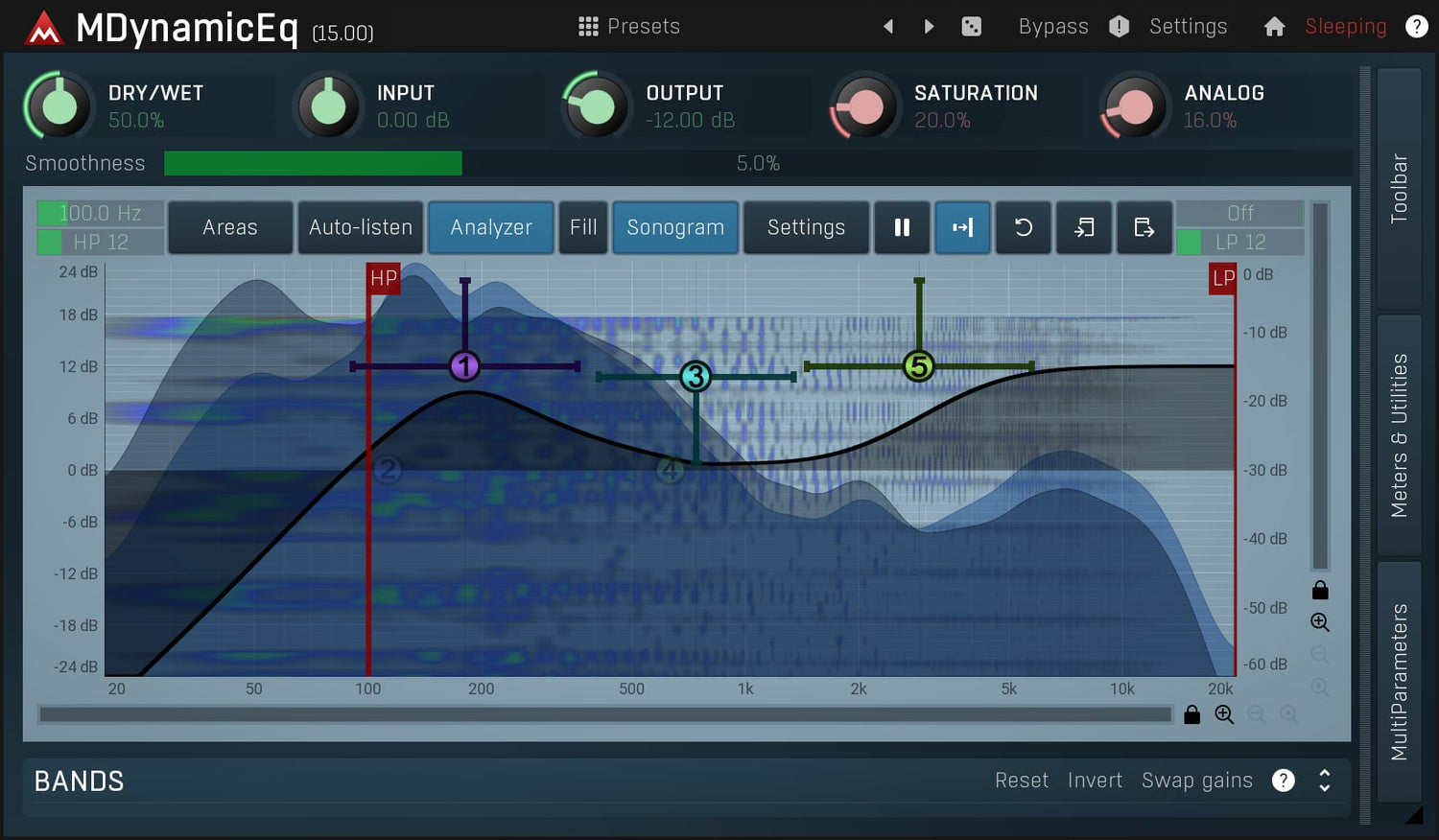 Equalizing er sannsynligvis den viktigste oppgaven, så du bør skaffe deg det beste verktøyet der ute! MDynamicEq, lillebroren til MAutoDynamicEq, er en utrolig transparent og musikalsk klingende equalizer med et nydelig interface fylt med fantastiske funksjoner. Den driver teknologien fremover ved å introdusere dynamisk prosessering!