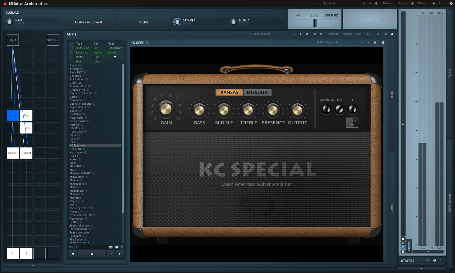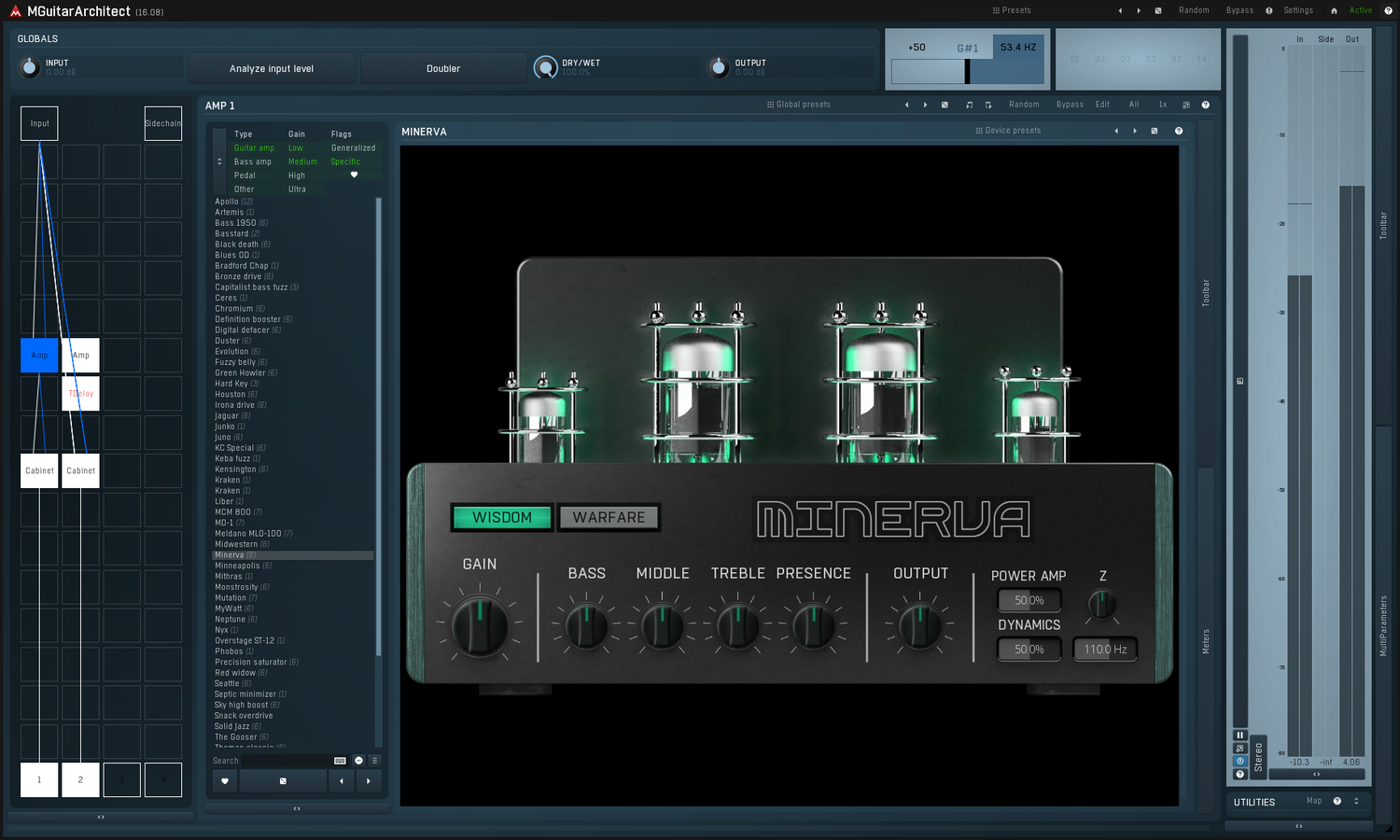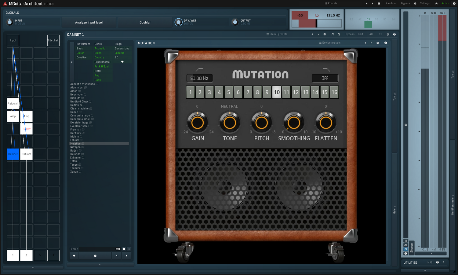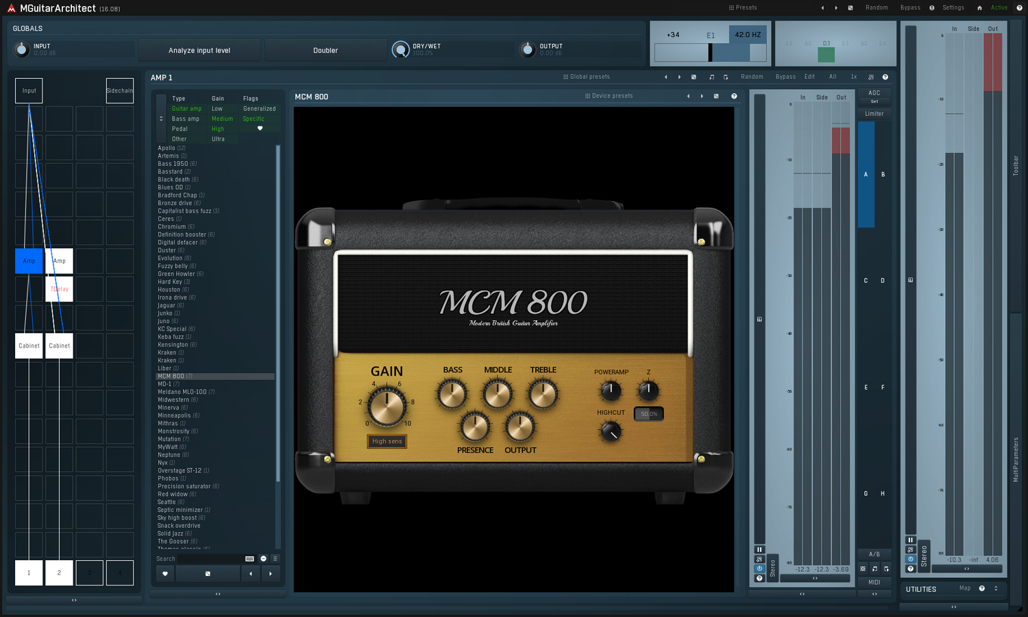 MGuitarArchitect er gitar kjedesimulatoren med så mange konfigurasjoner at du aldri vil bli lei av å prøve den ut. Den har alt du noen gang trenger for å forme en profesjonell gitarlyd samlet i ett plugin. Den er full av effekter av alle slag, fra forsterkere og kabinetter til EQs, kompressorer og romprosessorer. Alle funksjonene er lett tilgjengelige og kan legges til og omorganiseres uten problemer. Og det finnes et stort utvalg av presets som gir deg fantastiske resultater med bare ett klikk.